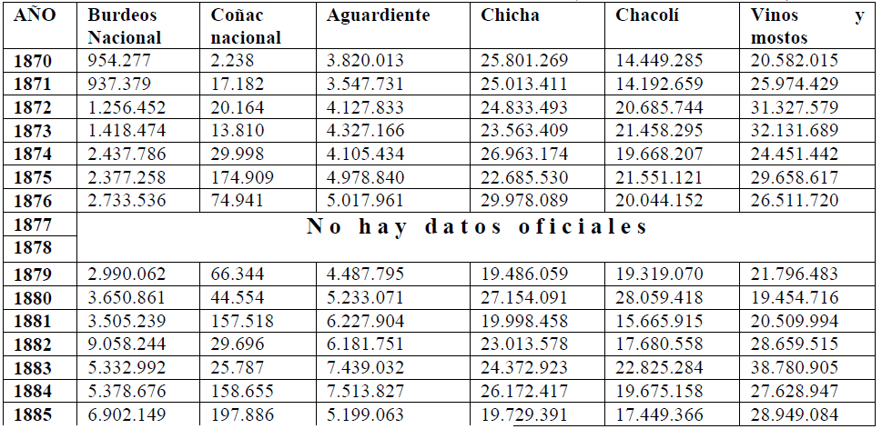 Tabla 1: Producción de bebidas alcohólicas en Chile (total nacional en litros)
