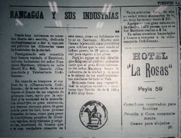 Fuente: Chile Nuevo, Rancagua y sus industrias: La Doñmuana . Rancagua, 19 de abril de 1925.