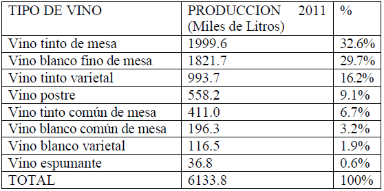 14 Actualmente, más del 60% de vino producido es vino de mesa, siendo solo el 22% de la producción vino de mayor calidad (Tiggelman y Magariños, 2012).