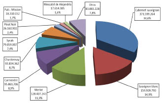 Figura 5: Producción por variedad de vinos con denominación de origen en Chile, durante 2013.