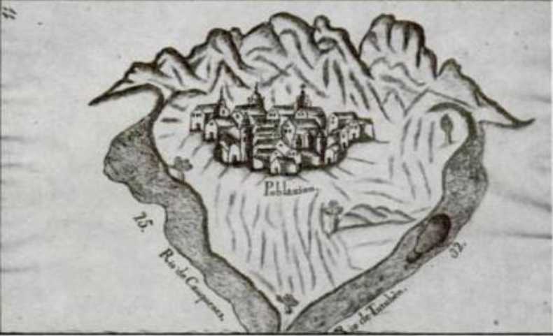 Figura 1: Cauquenes entre los ríos Cauquenes y Tutuvén. Siglo XVIII