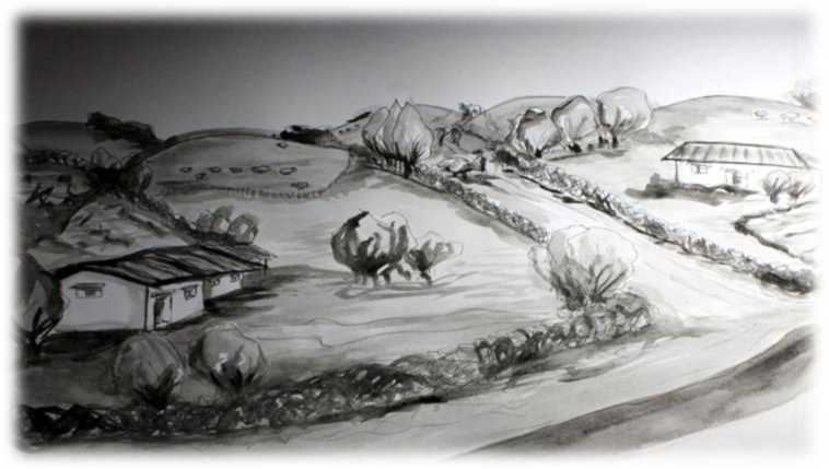 La siguiente ilustración es una reconstrucción histórica del paisaje de Cauquenes, a partir de los documentos del Fondo Judicial y Notarial de Cauquenes del Archivo Nacional de Chile.