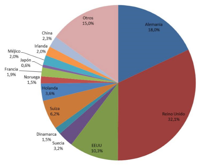 Figura 7: Destino de las exportaciones de vino de la DOCa Rioja (2013)