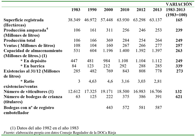 Tabla 1: Evolución del sector vitivinícola en la DOCa Rioja. Principales indicadores. (1983-2013)