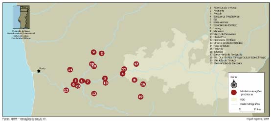 Como se pode observar, os maiores centros fornecedores de vinhos à cidade coincidem com os núcleos mais povoados junto dos cursos inferiores dos rios Douro e Tâmega, grosso modo, de Entre-os-Rios a Amarante, realidade que se explica pela concentração de gentes e de propriedades com tradição de cultivo de vinhos, nos vales desenhados pelo grande rio e seus afluentes, bem como pela facilidade de transporte (é o Douro na sua fase de melhor navegação) em barcas, as quais asseguravam um tráfego intenso que tinha a cidade como principal referente. Na área da actual região demarcada, sobressaíam os vinhos produzidos em Santa Marta de Penaguião e em Lamego, precisamente a mancha de maior intensidade de produção e a que virá a ser mais beneficiada nas demarcações da região vinhateira de meados do século XVIII. Da zona de Lamego deve destacar-se a menção a remessas de vinhos do vale do Varosa, expedidos desde os domínios dos mosteiros cistercienses de Salzedas e São João de Tarouca, cujo investimento na vitivinicultura, desde o século XII, terá contribuído decisivamente para a especialização regional.3