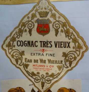 Es representativo observar la evidencia respecto al cognac y su contraparte: pisco y aguardientes. Los primeros registros de estos productos datan de 1923. Ese año la empresa Mitjans registró seis productos denominados como cognac. Estos representan el 27% del total, los aguardientes el 12% y el pisco apenas un 3%. La predominancia de registros de cognac es clara. Al respecto, en su artículo “Coñac, Pisco, Jerez y Oporto: batallas comerciales a través de la prensa chilena (1870-1885)”, Jeffs Munizaga da cuenta de la rivalidad que tuvo lugar en la prensa de la época entre el pisco y el cognac: “La cantidad de avisaje, promoción, importación, comercialización y distribución de estas bebidas desplazó y minimizó el impacto que el pisco podría tener dentro de la población chilena” (Jeffs, 2014: 78). La utilización del término “cognac” para productos nacionales generó una lucha entre este y el pisco, que en esencia era una batalla ficticia: no se trató de una rivalidad verdadera entre el cognac (francés) y el pisco (chileno), se trató de una rivalidad entre dos variaciones del mismo producto local. “El Congreso no logró detectar el valor que tenía el pisco para la economía nacional, y lo consideraba como un nombre de fantasía sin mayor relevancia. Para el Estado chileno daba lo mismo usar el nombre ‘pisco’ o ‘cognac’” (Lacoste, 2014b).