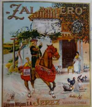 En cuanto a las etiquetas, presentamos aquí cuatro muestras. La Imagen 6 nos presenta un vino generoso que, a juzgar por la etiqueta, está orgulloso de su lugar de origen: la tipografía utilizada para el lugar de procedencia es incluso más grande que la empleada en nombrar al producto. Lo opuesto encontramos en la Imagen 7, donde ni siquiera se menciona el lugar de origen. El lugar también pasa desapercibido en las imágenes sobre jerez 8 y 9.