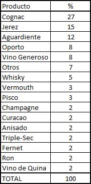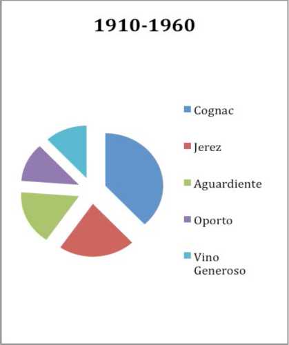Como se aprecia en la Tabla 1, el rango de productos de la empresa abarca desde el conocido cognac, hasta, incluso, fernet. A pesar de esta variada gama, los cinco productos más registrados -cognac, jerez, aguardiente, oporto y vinos generosos-,1 concentran el 70% del total.